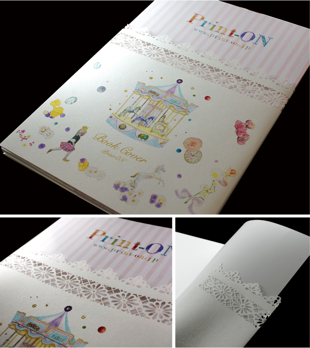 | 箔押しや、カッティング、窓貼り等 特殊加工で更に豪華なブックカバーがつくれます。 有料オプションとして豊富な特殊加工をご用意してあります。 箔押し加工でタイトルをギラギラにしたり、カッティング加工でカバーに穴を空けたり等、ブックカバーにも特殊加工をご利用可能です。特別な本にインパクト抜群の特殊加工を是非ご利用下さい。 ※ページ内に記載が無い加工でもお問い合わせ頂ければ、対応可能な場合もありますのでお気軽にお問い合わせ下さい。 |