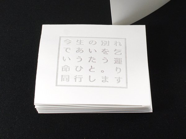 長い本文を1辺が95mmの正方形で蛇腹折りに。伸ばした本文の全長は1m33cmにもなります。
