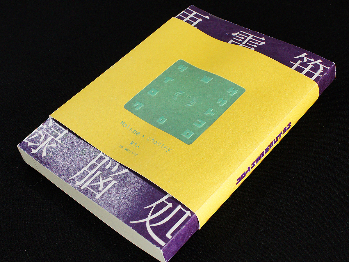 鮮やかな黄色が目を引くパチカカバーはオプションの変形断裁で丈を短くカットされ、表1の中心に巻くことで上下からタイトルが覗きます。